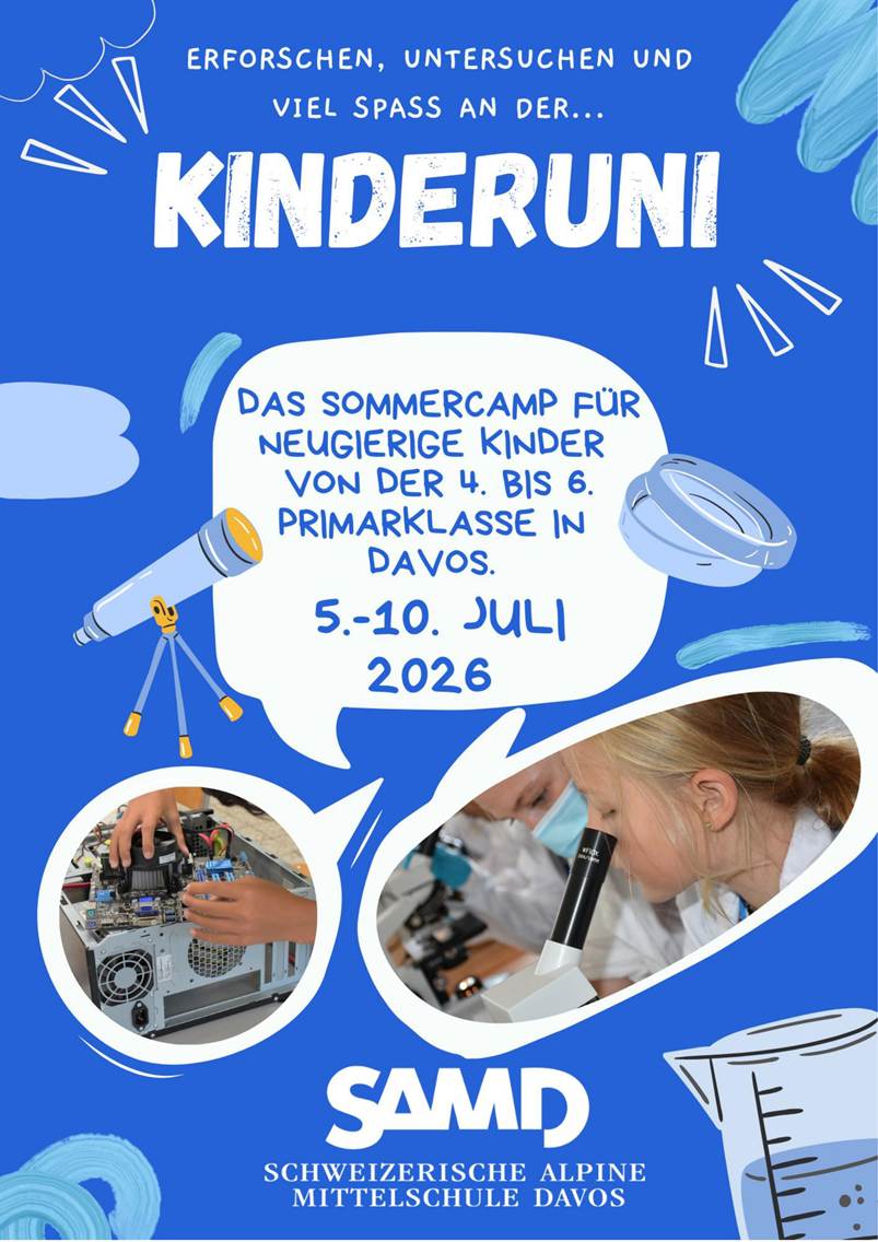 Weitergehende Informationen finden Sie nachfolgend auf dem Flyer oder besuchen Sie unsere Homepage (https://www.samd.ch/de/schule/kinderuni ).